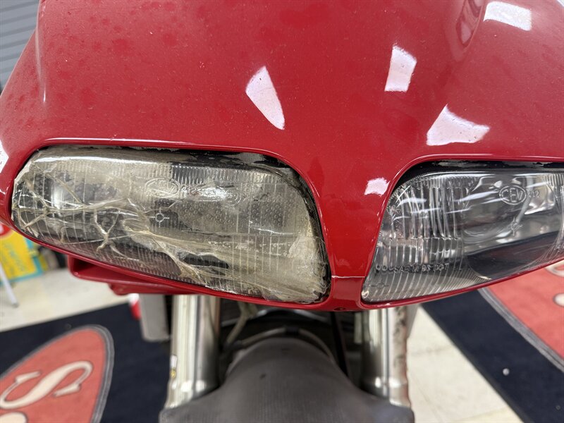 NOTE: We purchased this Ducati from an estate auction. Information was limited, but from what we can tell this bike was sold new in Oregon where its original owner kept it until 3/2014 when they had an accident causing the insurance company to declare it a total loss. The bike then ended up in Ohio with a salvage title. The damage was seemingly limited to cracks/scrapes in the fairings, a cracked headlight, a slight bend in the radiator (no leaks), and a missing left mirror. It had 16,240 miles on it at the time of the damage (1 mile less than it currently shows), so this motorcycle hasn't been ridden in 11 years. We checked the fluids and installed a new battery and it fired right up, but it HAS NOT BEEN RIDDEN and should have a thorough going-over prior to use.