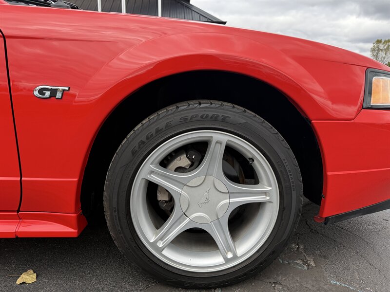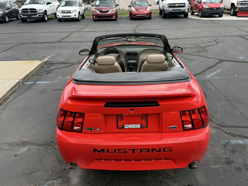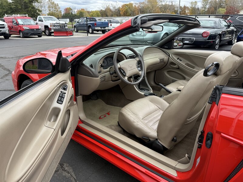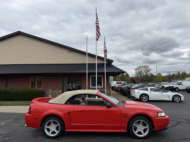 2000 FORD MUSTANG GT - POWER SOFT TOP CONVERTIBLE - 4.6 LITER SOHC V8 ENGINE WITH 260 HORSEPOWER - 4-SPEED AUTOMATIC TRANSMISSION - 85,000 MILES - PERFORMANCE RED EXTERIOR OVER MEDIUM PARCHMENT WITH TAN SOFT TOP - POWER LEATHER SPORT BUCKET SEATS - 17 INCH ALLOY WHEELS WITH 245/45ZR17 RUBBER - GLASS REAR WINDOW WITH DEFOGGER - TRACTION CONTROL - 3.27 RATIO REAR AXLE WITH TRAC-LOCK LIMITED SLIP DIFFERENTIAL - MACH 460 PREMIUM AUDIO - KENWOOD CD PLAYER - REMOVABLE SOFT TONNEAU COVER - COLD AIR INTAKE - LEATHER WRAPPED STEERING WHEEL - GT EMBROIDERED FLOOR MATS - THIS DROP-TOP GT MUSTANG IS EXTRA CLEAN AND DRIVES BEAUTIFULLY - FOR MORE DETAILS OR TO SCHEDULE A TEST DRIVE, PLEASE CALL 810-487-2020