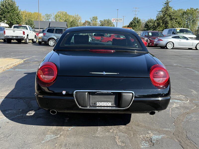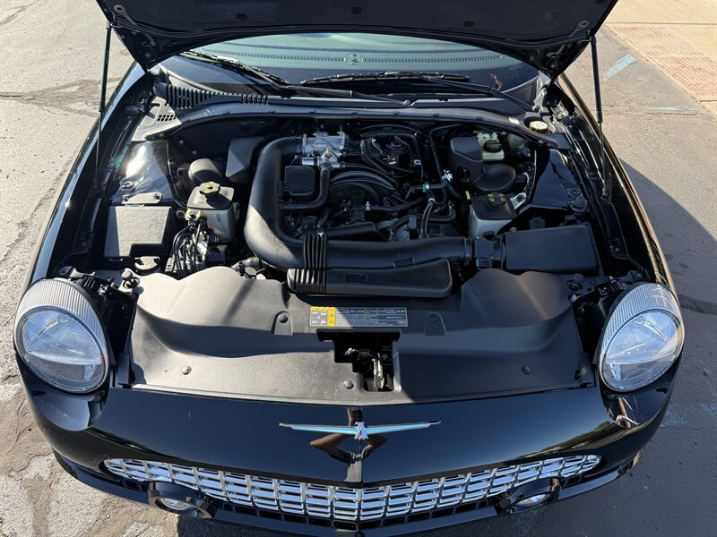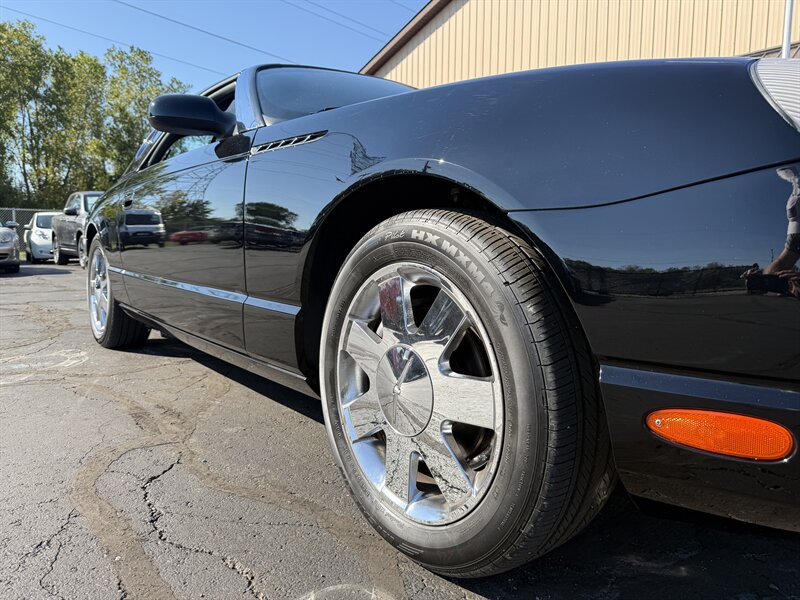 2002 FORD THUNDERBIRD DELUXE CONVERTIBLE - EVENING BLACK OVER MIDNIGHT BLACK LEATHER WITH BLACK POWER-FOLDING SOFT TOP - BLACK ACCENT PACKAGE - REMOVABLE EVENING BLACK HARDTOP WITH STORAGE STAND INCLUDED - 3.9 LITER V8 ENGINE - 5-SPEED AUTOMATIC TRANSMISSION - 6-WAY POWER DRIVER SEAT - 2-WAY POWER PASSENGER SEAT - TRACTION CONTROL - AM/FM STEREO WITH IN DASH 6-DISC CD CHANGER - 17 INCH CHROME WHEELS - DUAL ZONE AUTOMATIC CLIMATE CONTROL - TRACTION CONTROL - LEATHER WRAPPED STEERING WHEEL WITH AUDIO AND CRUISE CONTROLS - POWER TILT AND TELESCOPING WHEEL - KEYLESS ENTRY - BOTH SETS OF KEYS AND FOBS AND TOP REMOVAL TOOL - RECENT FULL TUNE UP - THIS THUNDERBIRD LOOKS AND DRIVES EXCELLENT, AND IT WILL MAKE ITS NEW OWNER VERY HAPPY - FOR MORE DETAILS OR TO SCHEDULE A TEST DRIVE, PLEASE CALL 810-487-2020