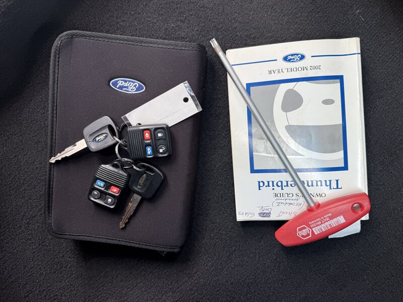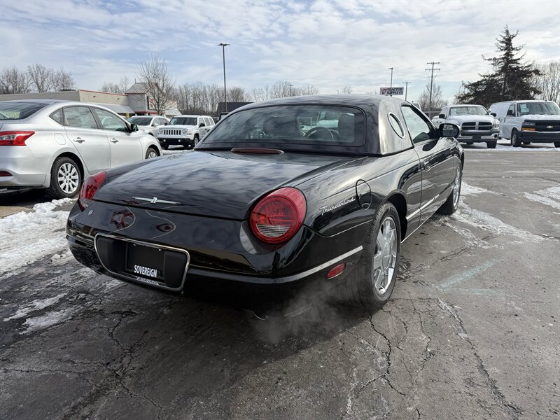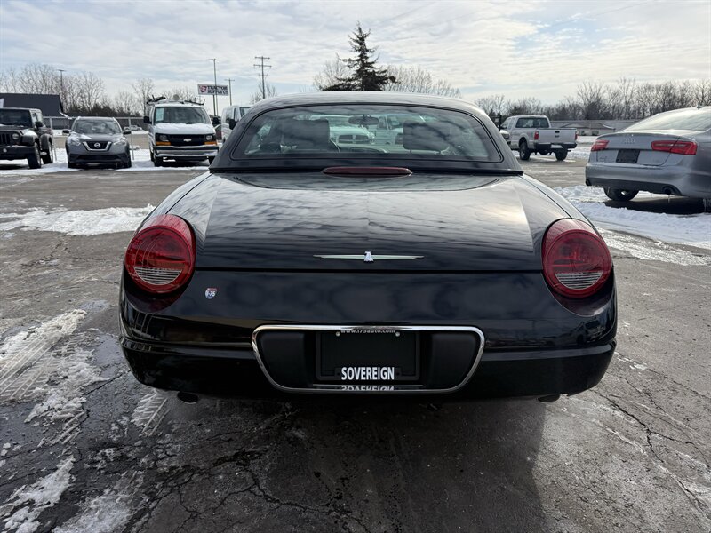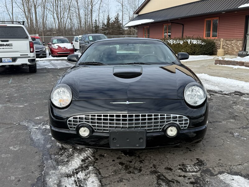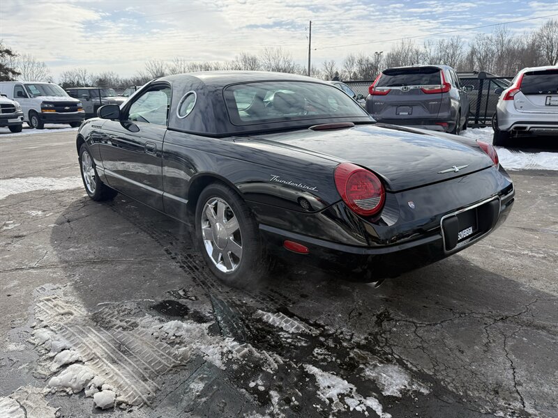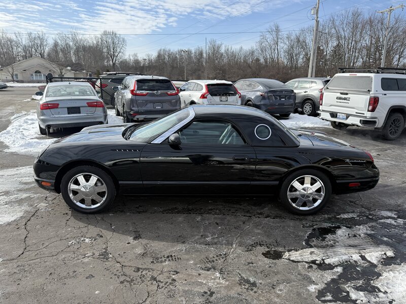 2002 FORD THUNDERBIRD DELUXE CONVERTIBLE - EVENING BLACK OVER MIDNIGHT BLACK LEATHER WITH BLACK POWER-FOLDING SOFT TOP - REMOVABLE EVENING BLACK HARDTOP - 3.9 LITER V8 ENGINE - 5-SPEED AUTOMATIC TRANSMISSION - 6-WAY POWER DRIVER SEAT - 2-WAY POWER PASSENGER SEAT - TRACTION CONTROL - AM/FM STEREO WITH IN DASH 6-DISC CD CHANGER - 17 INCH CHROME WHEELS - DUAL ZONE AUTOMATIC CLIMATE CONTROL - TRACTION CONTROL - LEATHER WRAPPED STEERING WHEEL WITH AUDIO AND CRUISE CONTROLS - POWER TILT AND TELESCOPING WHEEL - KEYLESS ENTRY - BOTH SETS OF KEYS AND FOBS, OWNERS MANUAL, AND TOP REMOVAL TOOL - THIS THUNDERBIRD LOOKS AND DRIVES GREAT, AND IT WILL MAKE ITS NEW OWNER VERY HAPPY - FOR MORE DETAILS OR TO SCHEDULE A TEST DRIVE, PLEASE CALL 810-487-2020