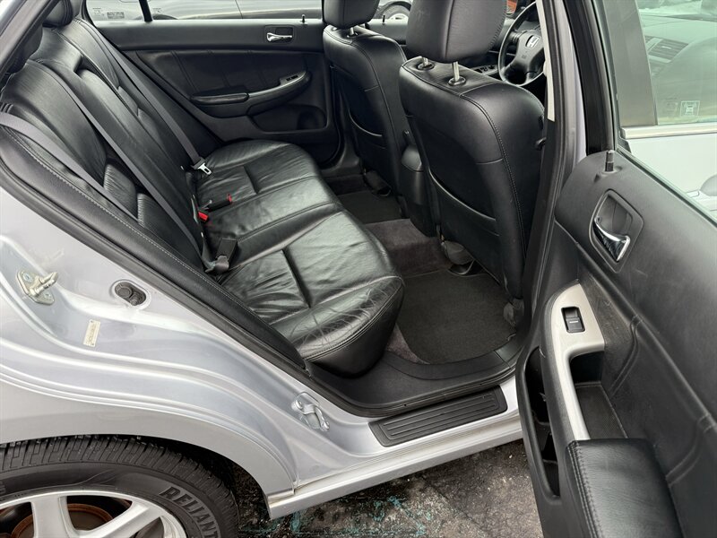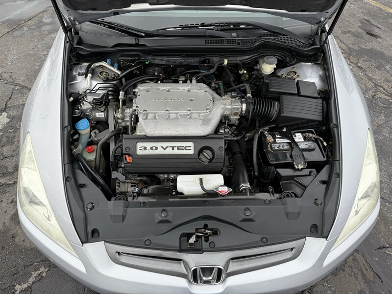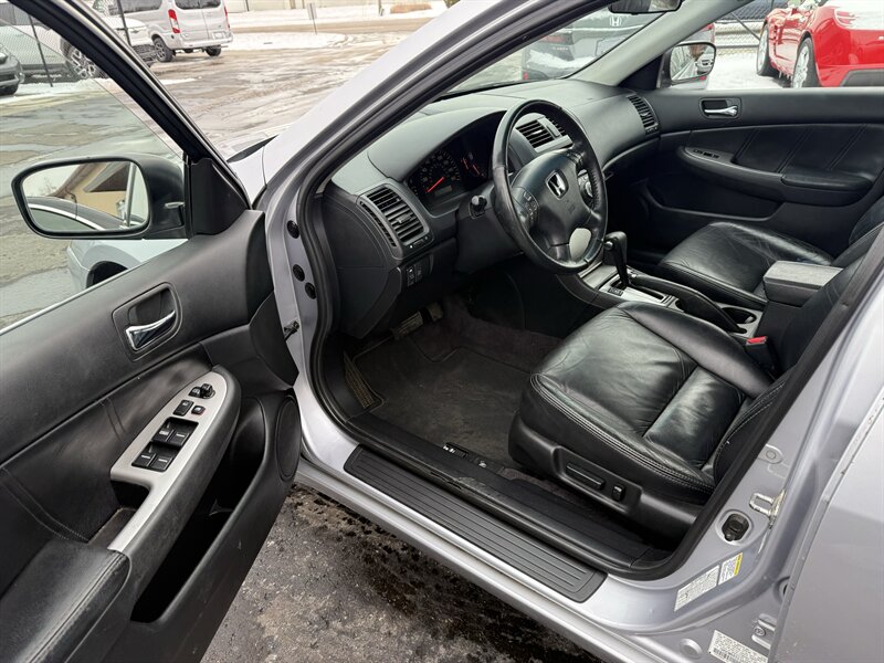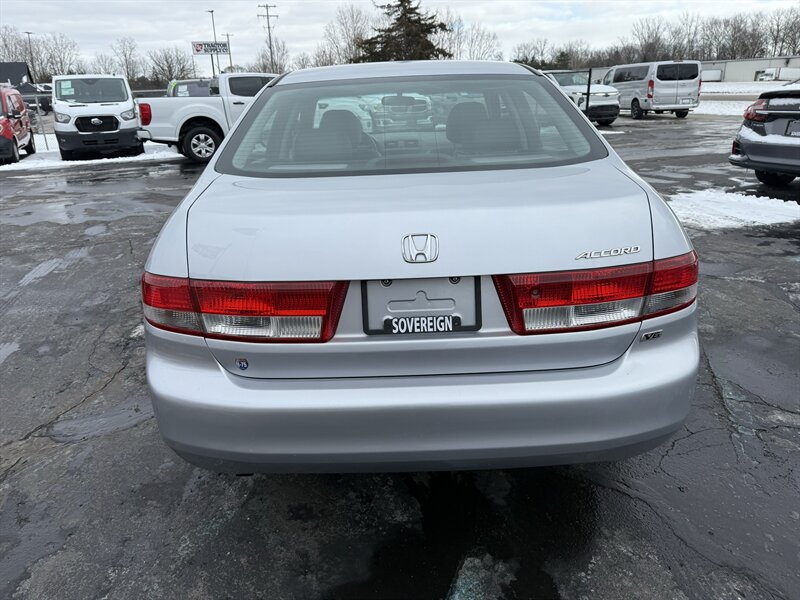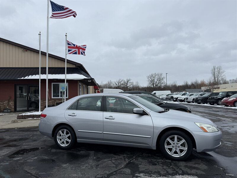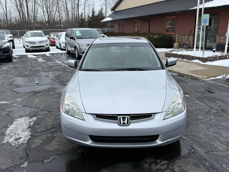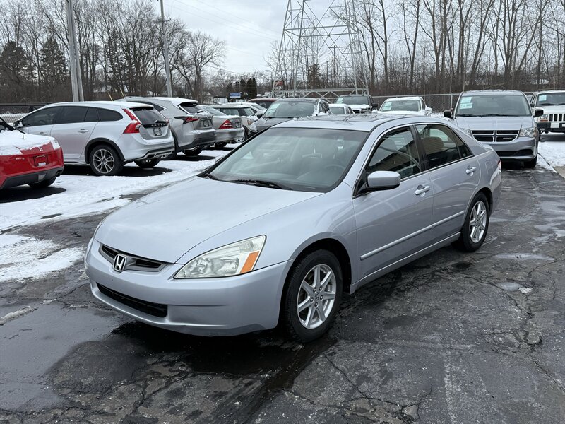 2003 HONDA ACCORD EX - 3.0 LITER VTEC V6 ENGINE WITH 240 HORSEPOWER - 5-SPEED AUTOMATIC TRANSMISSION - 2-OWNER CAR FROM OREGON AND FLORIDA WITH ZERO RUST AND 34 SERVICE HISTORY RECORDS ON CARFAX - SATIN SILVER METALLIC WITH BLACK INTERIOR - 16 INCH ALLOY WHEELS WITH GOODYEAR ALL-SEASON TIRES SHOWING GOOD TREAD - HEATED LEATHER SEATS - POWER DRIVER AND PASSENGER SEATS - POWER MOONROOF - KEYLESS ENTRY - LEATHER WRAPPED STEERING WHEEL WITH AUDIO AND CRUISE CONTROLS - AUTOMATIC DUAL ZONE CLIMATE CONTROL - AM/FM STEREO WITH IN-DASH 6 DISC CD CHANGER - 21 CITY AND 30 HIGHWAY EPA RATED MILES PER GALLON - THIS IS A GREAT DRIVING HONDA THAT HAS BEEN WELL MAINTAINED AND HAS ZERO RUST - FOR MORE DETAILS OR TO SCHEDULE A TEST DRIVE, PLEASE CALL 810-487-2020