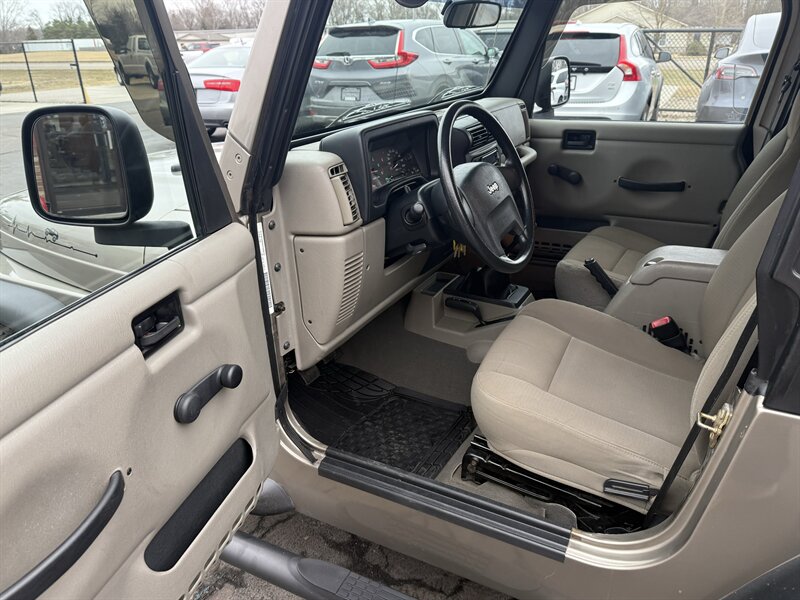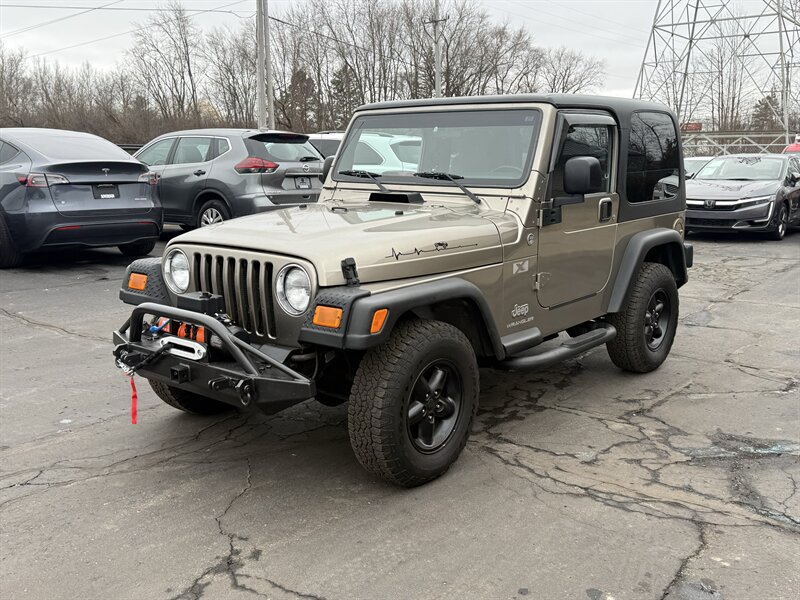 2006 JEEP WRANGLER SPORT - 106,000 MILES - CLEAN "TJ" FROM SUNNY FLORIDA WITH NO RUST - 4.0 LITER "POWER TECH" INLINE 6 CYLINDER - 6-SPEED MANUAL TRANSMISSION - 4 WHEEL DRIVE WITH NVG231 COMMAND-TRAC 2H/4H/N/4L TRANSFER CASE - DANA 30 FRONT & DANA 35 REAR SOLID AXLES WITH 3.07 RATIOS - LIGHT KHAKI EXTERIOR OVER KHAKI CLOTH INTERIOR - BLACK HARDTOP WITH TINTED PRIVACY GLASS AND REAR WIPER - FULL METAL DOORS WITH MANUAL ROLL UP WINDOWS - 15 INCH ALLOY WHEELS WITH 235/75R15 GOODYEAR WRANGLERS - AIR CONDITIONING - AM/FM STEREO WITH CD PLAYER - TILT WHEEL - BODY SIDE STEPS - AFTERMARKET STEEL REAR BUMPER W/D-RINGS - AFTERMARKET STEEL FRONT WINCH-BUMPER WITH TOW BAR PROVISIONS AND 2" RECEIVER - BRAND NEW 10,000 POUND ELECTRIC WINCH WITH SYNTHETIC LINE AND WIRELESS REMOTE - TWO KEYS AND ALL MANUALS - THIS TRAIL RATED TJ IS ROCK SOLID AND MOSTLY STOCK, IT DRIVES EXCELLENT AND WILL MAKE ITS NEW OWNER VERY HAPPY - FOR MORE DETAILS OR TO SCHEDULE A TEST DRIVE, PLEASE CALL 810-487-2020