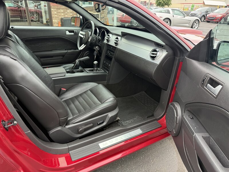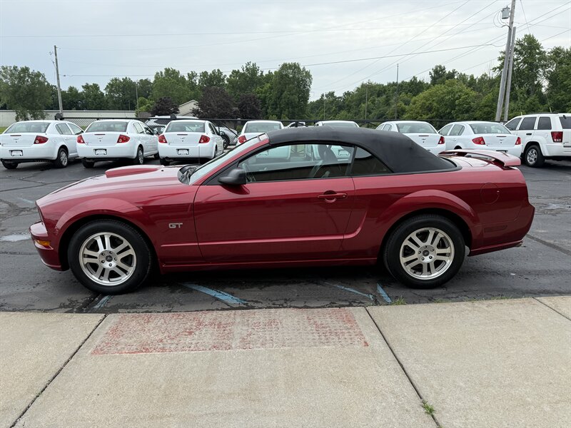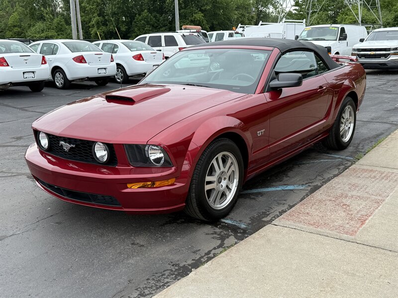 2007 FORD MUSTANG GT PREMIUM - POWER SOFT TOP CONVERTIBLE WITH HEATED GLASS REAR WINDOW - 46,000 MILES - BEAUTIFUL REDFIRE METALLIC OVER DARK CHARCOAL WITH BLACK TOP - 4.6 LITER SOHC 24 VALVE ENGINE PRODUCING 300 HORSEPOWER - TREMEC TR3650 5-SPEED MANUAL TRANSMISSION - 3.31 REAR AXLE WITH LIMITED SLIP DIFFERENTIAL - 17 INCH PREMIUM ALLOY WHEELS - GT APPEARANCE PACKAGE WITH HOOD SCOOP AND REAR SPOILER - PONY EMBLEM ENGINE COVER - PREMIUM LEATHER SPORT BUCKET SEATS - 6-WAY POWER DRIVER 2-WAY POWER PASSENGER SEATS - HEATED FRONT SEATS - ELECTROCHROMATIC MIRROR WITH COMPASS - INTERIOR UPGRADE PACKAGE - COMFORT GROUP PACKAGE - FRONT SIDE AIRBAGS - FLOWMASTER EXHAUST - FRONT RALLY LIGHTS - THIS MUSTANG LOOKS, SOUNDS, AND DRIVES GREAT - FOR MORE DETAILS OR TO SCHEDULE A TEST DRIVE, PLEASE CALL 810-487-2020