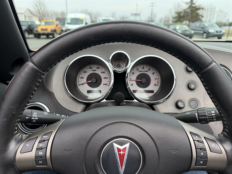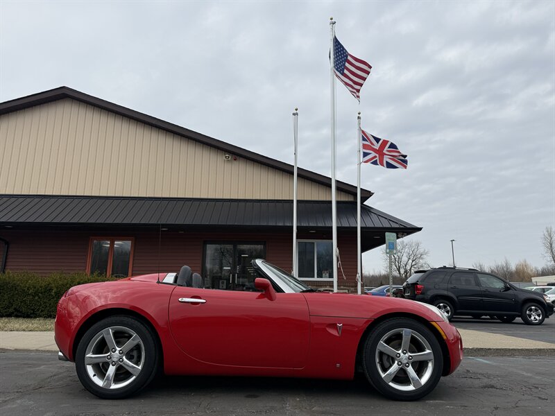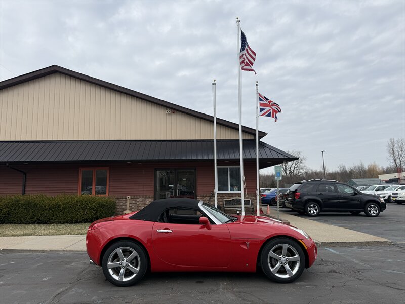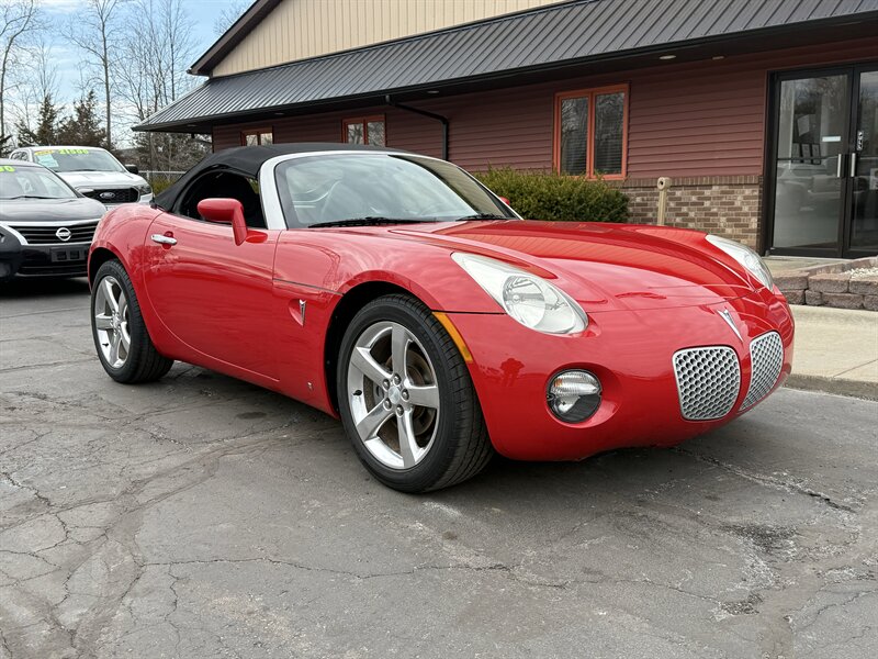 2007 PONTIAC SOLSTICE CONVERTIBLE - 2-OWNER FLORIDA CAR - 2.4 LITER 177 HORSEPOWER 4 CYLINDER - 5-SPEED AUTOMATIC TRANSMISSION - VICTORY RED EXTERIOR OVER EBONY INTERIOR WITH BLACK SOFT TOP - MANUAL FOLDING SOFT TOP ROOF WITH HEATED GLASS REAR WINDOW - 3.91 RATIO REAR AXLE WITH LIMITED SLIP DIFFERENTIAL - 18 INCH POLISHED ALLOY WHEELS - LEATHER SEATS - CONVENIENCE PACKAGE - PREMIUM PACKAGE - POWER WINDOWS - POWER LOCKS - POWER HEATED MIRRORS - CRUISE CONTROL - LEATHER WRAPPED 3-SPOKE STEERING WHEEL - LEATHER WRAPPED SHIFT KNOB - KEYLESS ENTRY - 1 SET OF KEYS AND FOB, AND ALL MANUALS PRESENT - FACTORY AIR CONDITIONING CAR - MONSOON PREMIUM AUDIO - PIONEER TOUCHSCREEN STEREO - BACKUP CAMERA - THIS SOLSTICE DRIVES OUTSTANDING AND LOOKS GREAT - FOR MORE DETAILS OR TO SCHEDULE A TEST DRIVE, PLEASE CALL 810-487-2020