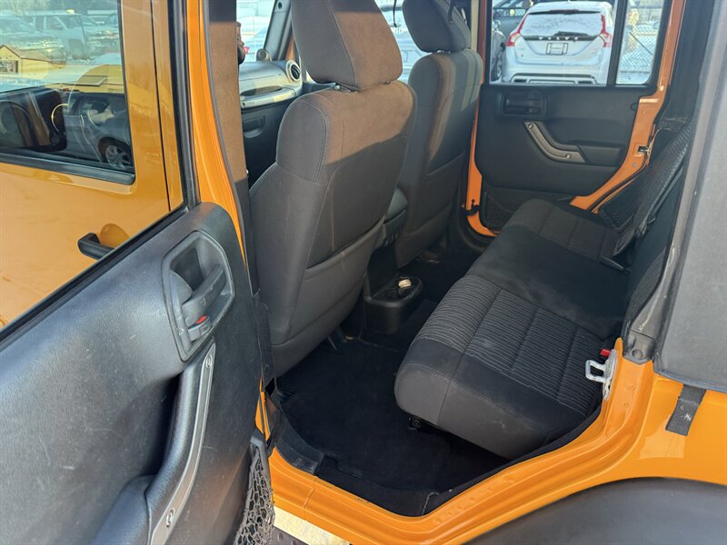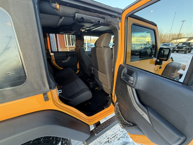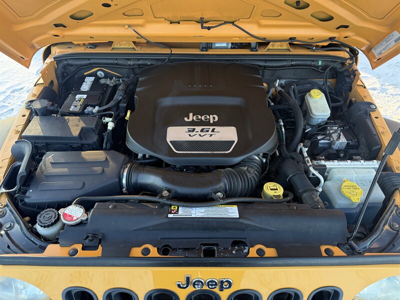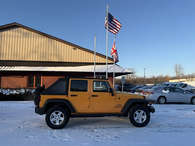 2013 JEEP WRANGLER UNLIMITED SPORT 4-DOOR - 3.6 LITER PENTASTAR 285 HORSEPOWER V6 - 6-SPEED MANUAL TRANSMISSION WITH HILL START ASSIST - COMMAND-TRAC SHIFT ON THE FLY 4X4 SYSTEM WITH LOW RANGE CAPABILITY - NEXT GENERATION DANA 44 HD REAR AND 30 FRONT AXLES WITH 3.73 RATIO - BESTOP SLANT-BACK SOFT TOP WITH TINTED WINDOWS - HARD TO FIND DOZER YELLOW WITH BLACK CLOTH INTERIOR - LEATHER WRAPPED STEERING WHEEL - CRUISE CONTROL - AIR CONDITIONING - POWER MIRRORS, WINDOWS, AND LOCKS - KEYLESS ENTRY - JVC TOUCHSCREEN STEREO - 17 INCH ALLOY WHEELS WITH 255/75R17 ALL TERRAIN TIRES - TOW PACKAGE - QUADRATEC TIRE TREAD FLOOR LINERS - THIS TRAIL RATED WRANGLER IS EXTRA CLEAN AND READY FOR ADVENTURE! - FOR MORE DETAILS OR TO SCHEDULE A TEST DRIVE, PLEASE CALL 810-487-2020