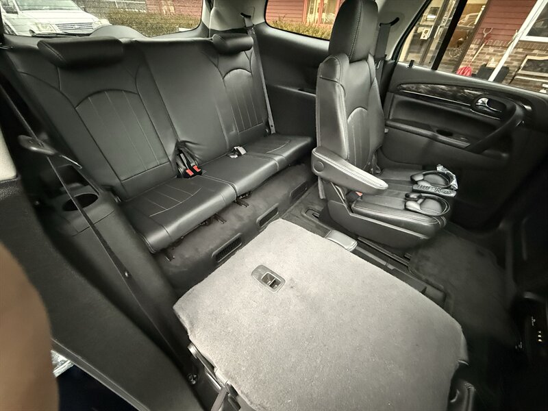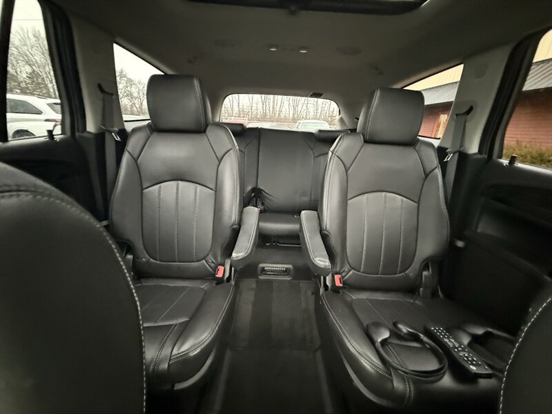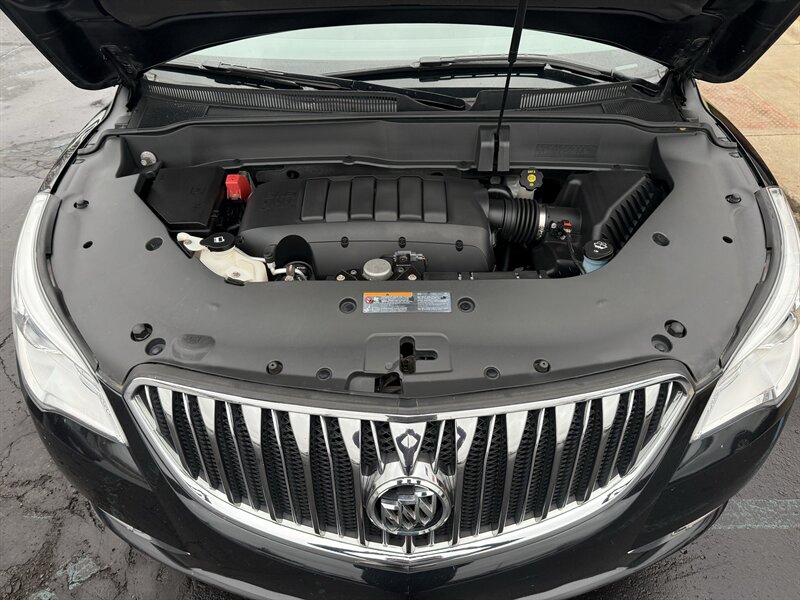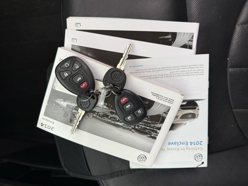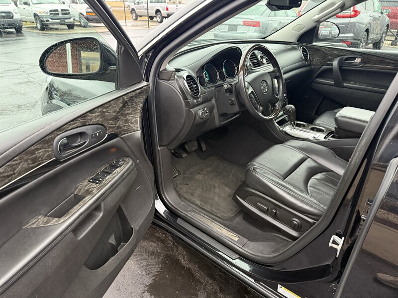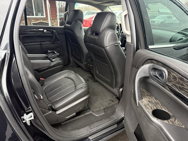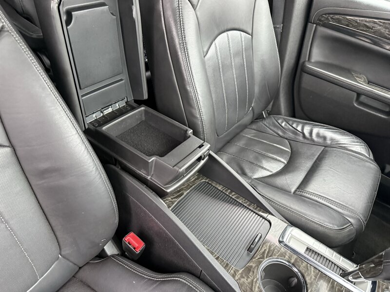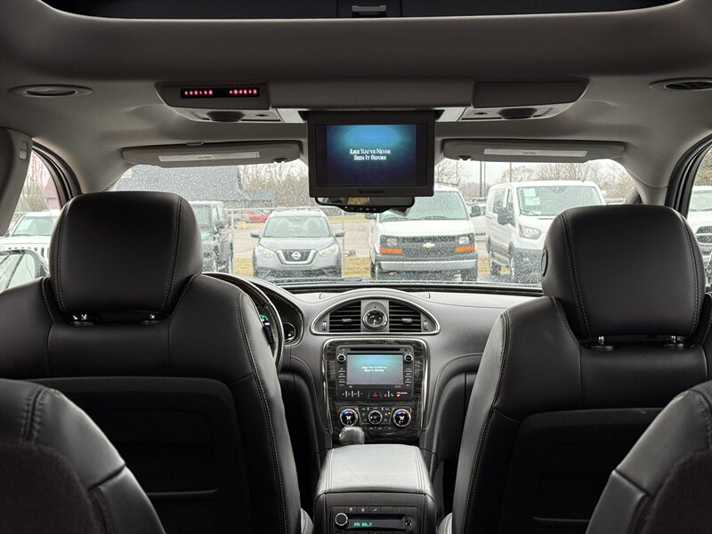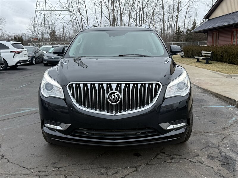 2014 BUICK ENCLAVE PREMIUM - FRONT WHEEL DRIVE - 3.6 LITER 288 HORSEPOWER V6 - 6-SPEED AUTOMATIC - ONE OWNER WELL MAINTAINED IN EXCELLENT CONDITION - CARBON BLACK METALLIC OVER EBONY BLACK LEATHER - 3RD ROW SEAT WITH TOTAL SEATING FOR 7 PASSENGERS - 19 INCH CHROME ALLOY WHEELS - 255/60R19 MICHELIN CROSSCLIMATE TIRES WITH EXCELLENT TREAD - DUAL SUNROOFS - REAR DVD ENTERTAINMENT PACKAGE WITH TWO WIRELESS HEADPHONES AND REMOTE - 110V HOUSEHOLD OUTLET - HEATED AND VENTILATED FRONT SEATS - 8-WAY POWER DRIVER SEAT WITH POWER LUMBAR SUPPORT - 8-WAY POWER PASSENGER SEAT - LEATHER WRAPPED STEERING WHEEL WITH AUDIO CONTROLS AND POWER ADJUSTABLE COLUMN - UNIVERSAL GARAGE DOOR OPENER - TRI-ZONE AUTOMATIC CLIMATE CONTROL WITH REDUNDANT CENTER ROW CONTROLS - FOLD AND SLIDE CENTER ROW CAPTAINS CHAIRS - FOLD-FLAT THIRD ROW - POWER REAR LIFTGATE - HIGH INTENSITY DISCHARGE PROJECTOR HEADLAMPS - BOSE PREMIUM AUDIO - COLOR TOUCH SCREEN STEREO WITH INTELLILINK AND NAVIGATION - XM RADIO - CD PLAYER - BACKUP CAMERA - REAR PARK ASSIST - EXTENDED RANGE KEYLESS ENTRY - REMOTE START - ROOF RACK - TWO KEYS AND FOBS AND ALL MANUALS - THIS ENCLAVE IS AS NICE AS THEY COME - FOR MORE DETAILS OR TO SCHEDULE A TEST DRIVE, PLEASE CALL 810-487-2020
