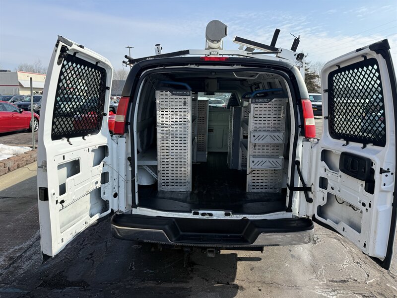 2014 CHEVROLET EXPRESS 2500 - EXTRA CLEAN 2-OWNER WELL MAINTAINED CARGO VAN WITH 135 INCH WHEELBASE - 4.8 LITER VORTEC V8 - 6L90 HEAVY DUTY 6-SPEED AUTOMATIC - REAR WHEEL DRIVE WITH 3.42 AXLE - 8,600 POUND GVWR - VERY NICE GLOBELYST M MODULAR SHELVING UNITS - KNAPHEIDE COMPOSITE CARGO DIVIDER WITH VIEWING WINDOW - DUAL ROOFTOP LADDER RACKS AND CARGO TUBE - PREFERRED EQUIPMENT GROUP - POWER LOCKS AND WINDOWS - KEYLESS ENTRY - AM/FM STEREO WITH AUX IN - FIXED GLASS REAR AND SIDE DOOR WINDOWS WITH SAFETY CAGES - ORANGE SAFETY BELTS - TRAILER WIRING - STROBE LIGHTS - BACKUP CAMERA - ADDITIONAL POWER INVERTER BEHIND PASSENGER SEAT - LOCKING OVERSIZE STEEL CENTER CONSOLE - 16 INCH STEEL WHEELS WITH NICE FIRESTONE TIRES - THIS 3/4 TON EXPRESS IS READY TO START EARNING YOU MONEY TODAY - FOR MORE DETAILS OR TO SCHEDULE A TEST DRIVE, PLEASE CALL 810-487-2020