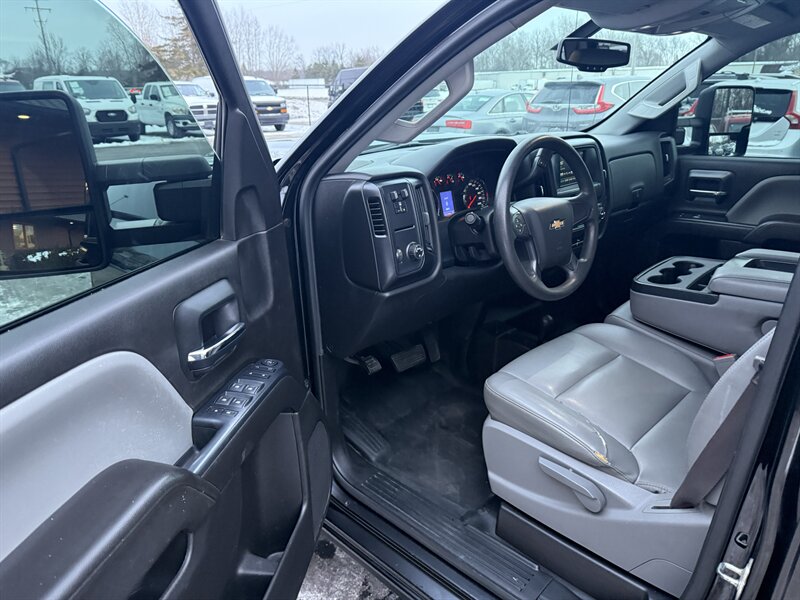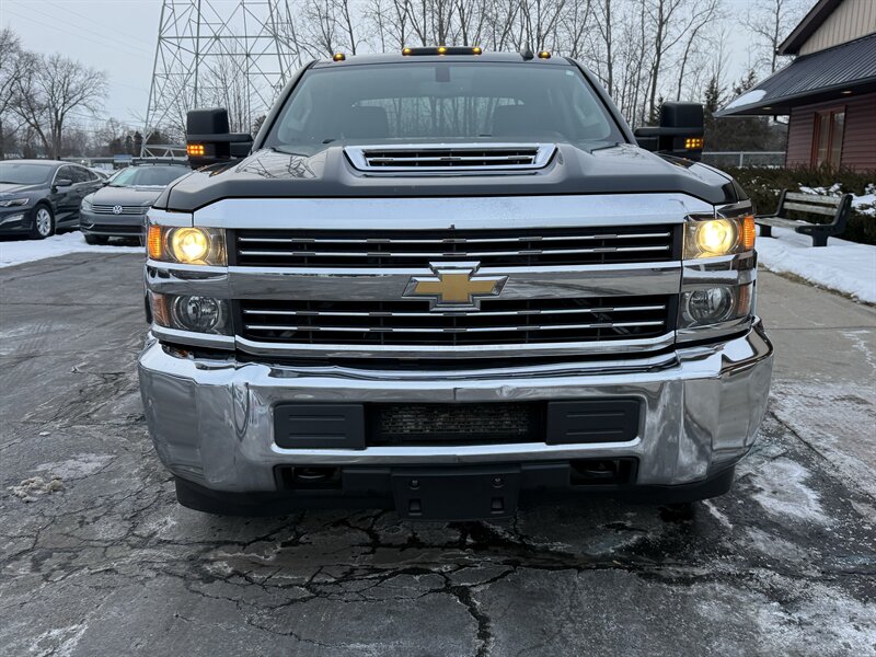 2017 CHEVY SILVERADO 3500HD WORK TRUCK - DUAL REAR WHEEL CREW CAB 8 FOOT BOX CONFIGURATION - FLOOR SHIFTED 4 WHEEL DRIVE - L5P 6.6 LITER DURAMAX TURBO DIESEL WITH 445 HORSEPOWER AND 910 FOOT POUNDS OF TORQUE - ALLISON 1000 6-SPEED HEAVY DUTY AUTOMATIC TRANSMISSION - 3.73 AXLE RATIO - G80 HEAVY DUTY LOCKING REAR DIFFERENTIAL - 13,025 POUND GVWR - 20,000 POUND CONVENTIONAL TOW RATING, 23,300 POUND FIFTH WHEEL TOW RATING - SOLID BLACK EXTERIOR WITH DARK ASH AND JET BLACK VINYL INTERIOR - EXHAUST BRAKE - TOWING PACKAGE WITH INTEGRATED BRAKE CONTROLLER - GOOSENECK HITCH WITH CAMPER WIRING PROVISIONS - 4.2 INCH COLOR SCREEN AM/FM STEREO W/AUX IN - BACKUP CAMERA - 110V HOUSEHOLD STYLE OUTLET - KEYLESS ENTRY - HIGH IDLE SWITCH - THIS HEAVY DUTY DURAMAX DUALLY IS READY TO TOW ANYTHING - FOR MORE DETAILS OR TO SCHEDULE A TEST DRIVE, PLEASE CALL 810-487-2020
