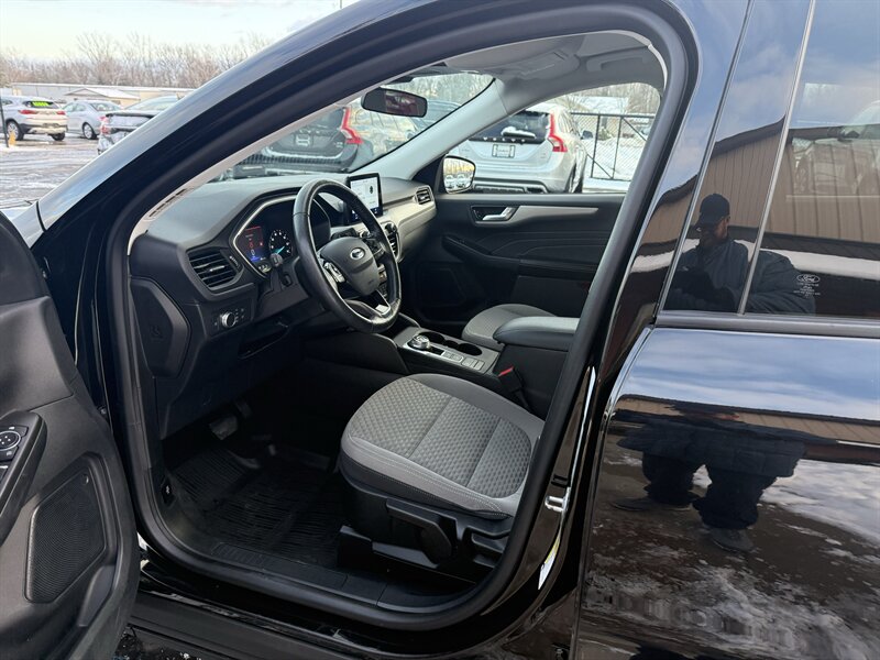 2021 FORD ESCAPE SE HYBRID - ALL WHEEL DRIVE - 2.5 LITER ATKINSON-CYCLE 4 CYLINDER WITH ELECTRIC MOTOR MAKING 200 COMBINED HORSEPOWER - AUTOMATIC E-CVT TRANSMISSION - 43 CITY AND 37 HIGHWAY EPA RATED MILES PER GALLON - 5 STAR GOVERNMENT SAFETY RATING - AGATE BLACK METALLIC WITH DARK EARTH GRAY INTERIOR - 17 INCH ALLOY WHEELS WITH CONTINENTAL TIRES - HALOGEN HEADLAMPS WITH AUTOMATIC HIGH BEAMS - LED TAIL LAMPS - COLD WEATHER PACKAGE - HEATED SEATS AND STEERING WHEEL - SYNC 3 AUDIO SYSTEM - FACTORY REMOTE START - KEYLESS ENTRY - MYKEY SYSTEM WITH TEEN DRIVER MODES - LANE KEEP ASSIST - BACKUP CAMERA - PRE-COLLISION WARNING - MULTIPLE DRIVE MODES - TWO KEYS - THIS SAFE AND PRACTICAL ESCAPE DRIVES EXCELLENT, AND IS EXTREMELY FUEL EFFICIENT FOR THIS CATEGORY OF VEHICLE - FOR MORE DETAILS OR TO SCHEDULE A TEST DRIVE, PLEASE CALL 810-487-2020
