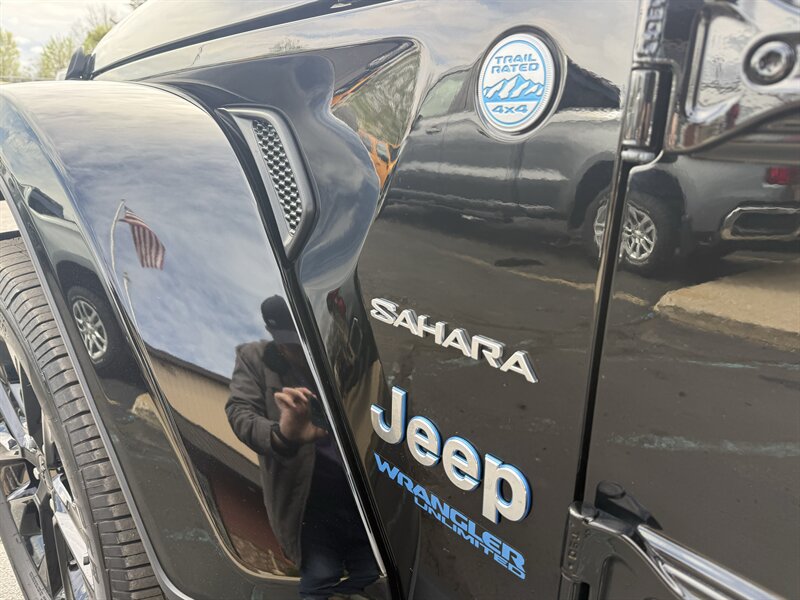 2022 JEEP WRANGLER UNLIMITED SAHARA 4XE - 2.0 LITER 270 HORSEPOWER DOHC TURBO ENGINE - 8 SPEED AUTOMATIC TRANSMISSION - 14 kWh BATTERY AND DUAL ELECTRIC MOTORS TOTALING 178 HORSEPOWER - 49 MPGe COMBINED CITY/HIGHWAY EPA RATING - 21 MILE PURE ELECTRIC RANGE - SELEC-TRAC 4X4 SYSTEM WITH 4WD AUTO - LEATHER TRIMMED HEATED SEATS WITH SAHARA LOGO - LEATHER WRAPPED MULTIFUNCTION HEATED STEERING WHEEL - 8.4 UCONNECT INFOTAINMENT WITH NAVIGATION - APPLE CARPLAY AND ANDROID AUTO EQUIPPED - ALPINE PREMIUM AUDIO - REMOTE START - KEYLESS ENTRY AND IGNITION - SUNRIDER SOFT TOP - 20 INCH ALLOY WHEELS - AUTOMATIC LED HEADLAMPS - LED TAIL LAMPS - COLOR MATCHED FENDERS - FULL SIZE SPARE - FACTORY DRIVETRAIN WARRANTY ACTIVE UNTIL 4/14/2027 OR 60,000 MILES - THE 4XE HAS A VERY CLEVER DRIVETRAIN THAT DELIVERS 375 TOTAL HORSEPOWER AND 470 FT LBS OF TORQUE GOOD FOR 5.5 SECOND 0-60, THIS EXAMPLE DRIVES AND LOOKS EXCELLENT - FOR MORE DETAILS OR TO SCHEDULE A TEST DRIVE, PLEASE CALL 810-487-2020